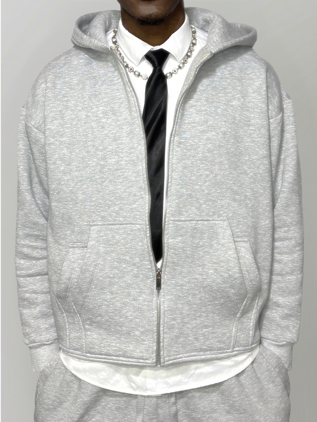 • Two-piece set: zipped hoodie + joggers